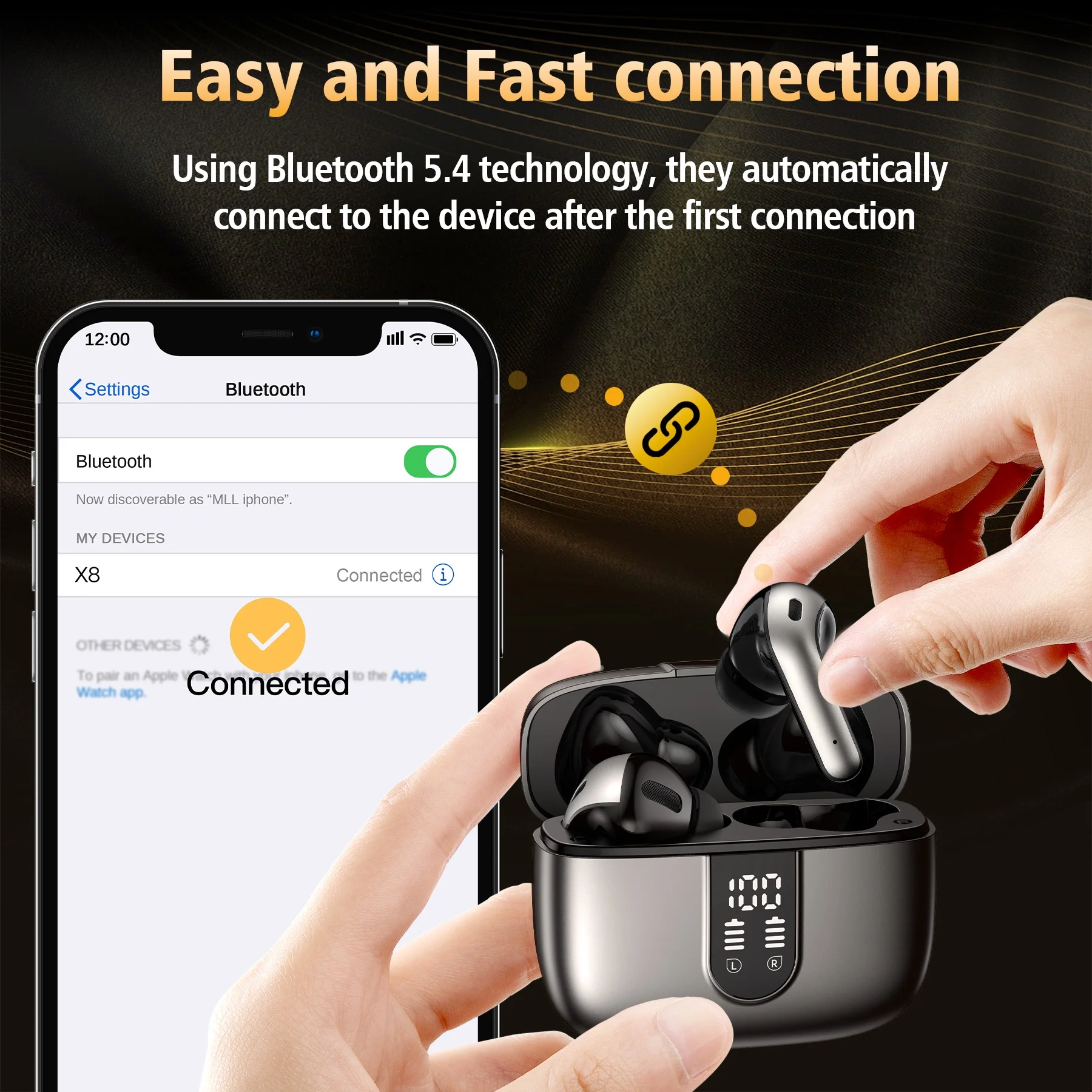 【Wide Compatible:】 Bluetooth earphones connect to any Bluetooth device. Use it with your iPhone 16, 16 Pro, 16 Pro Max, XS Max, XS, X, XR, 8, 7, 6 Plus, 6S, SE, 5S, iPad, iPod, Samsung Galaxy S25 Ultra、S25+、S25, Note 10 Plus, LG, Google Pixel, Windows,Huawei, HTC, etc.